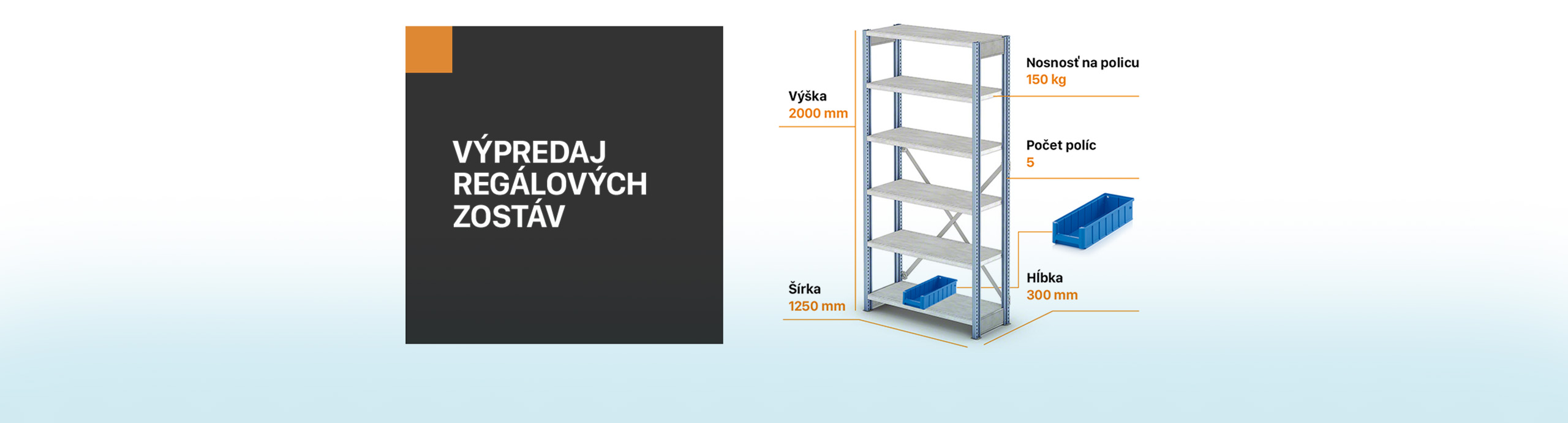 Potrebujete rozšíriť úložný priestor? Doplňte svoj sklad o najobľúbenejšie regálové zostavy. Na sklade máme regálové zostavy, ktoré sa hodia do každého skladu s výškou 2.000 mm, šírkou 1.250 mm...